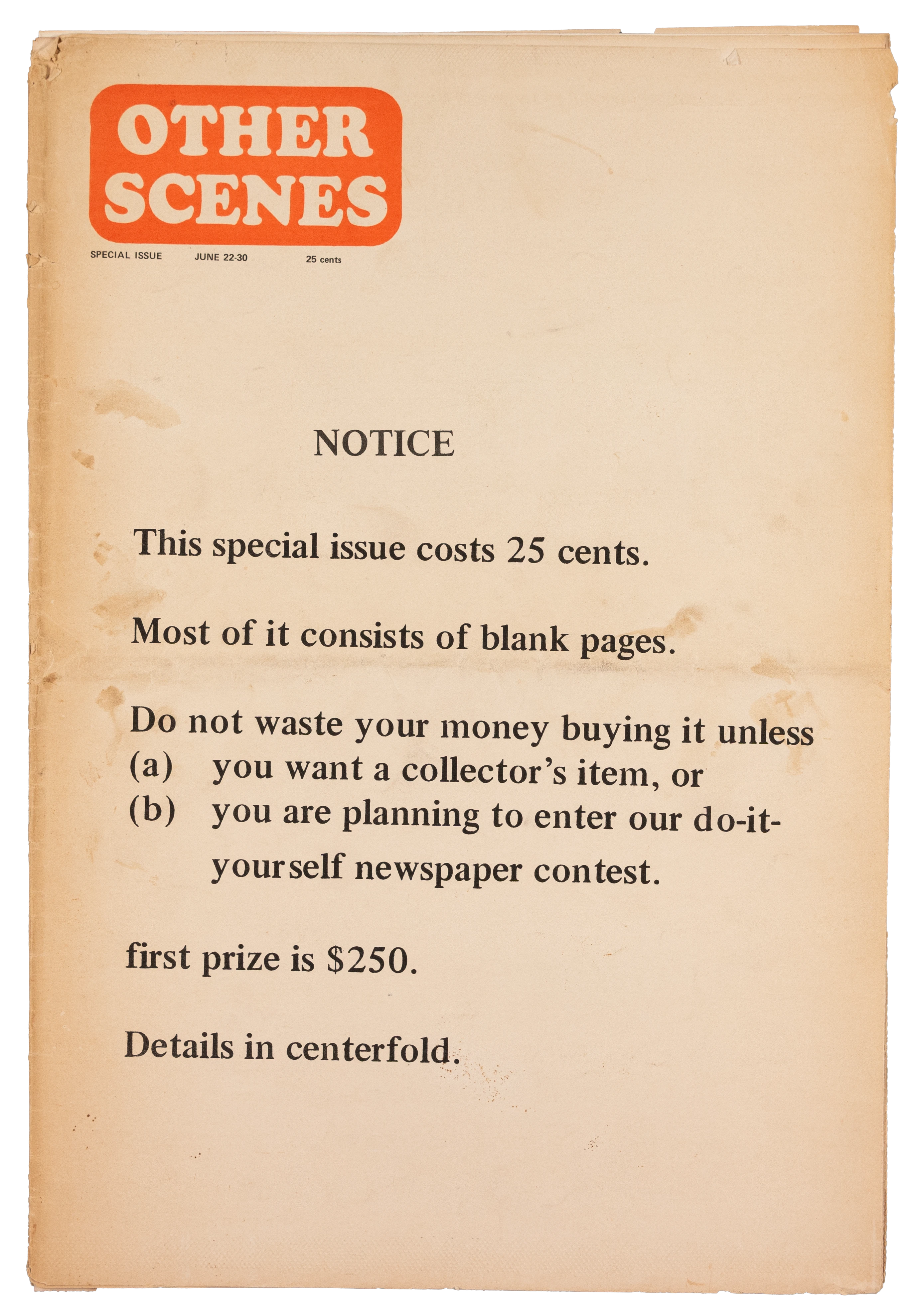 010_20 Other Scenes Special Issue Ort Kiste 1 URL https://aip.hfk-bremen.de/archive/010-20 Ort New York Editor John Wilcock Jahr 1969 Filter Periodisch Zeitung